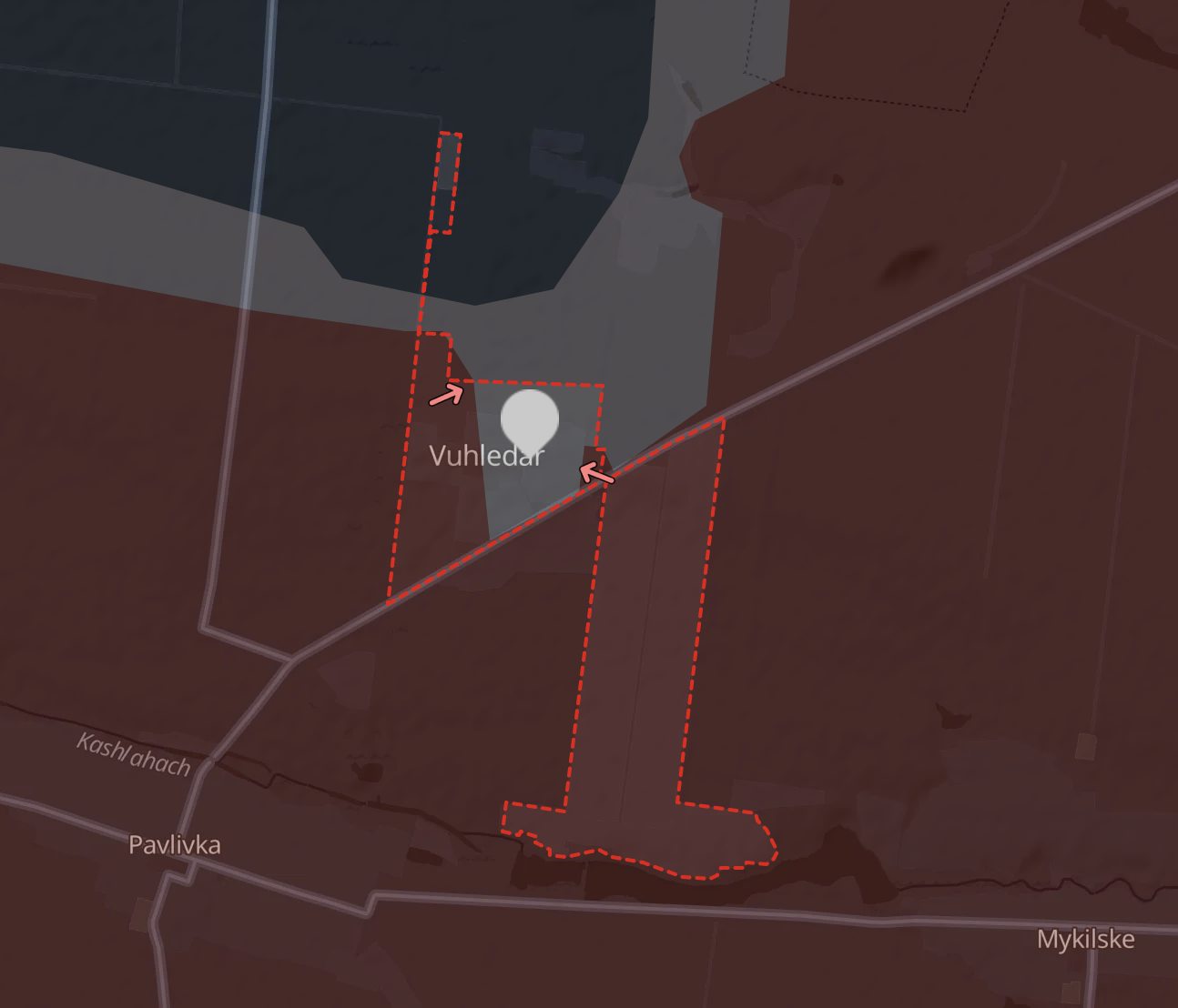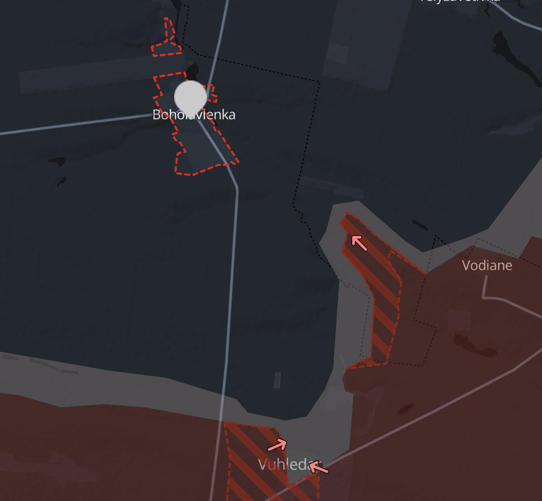 Одночасно, судячи з карти Deep State, російські війська просунулися з південного сходу до Богоявлення - села, через яке проходить "дорога життя" до Вугледару. І куди, у разі залишення міста, може вийти його гарнізон.