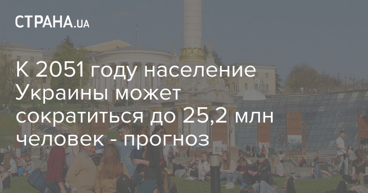 До 2051 року населення України може скоротитися до 25,2 млн осіб. Про це йдеться у прогнозі Інституту демографії та проблем якості життя НАН, наведеному у Стратегії демографічного розвитку країни на період до 2040 року.