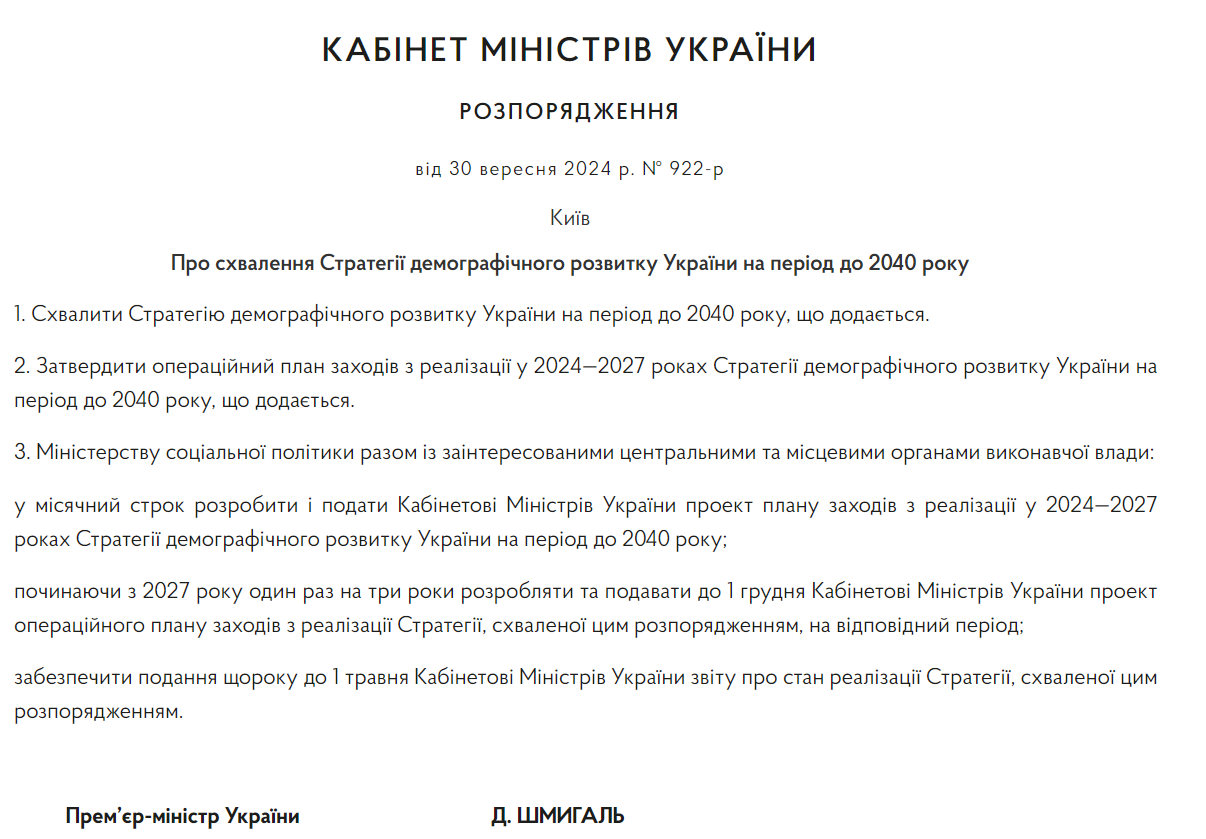 Серед причин скорочення населення уряд називає війну, міграцію, скорочення народжуваності та зростання смертності, старіння населення, часті передчасні смерті, відмову населення від закладу дітей, погіршення здоров'я через неспортивний спосіб життя українців та погану медицину в умовах війни.
