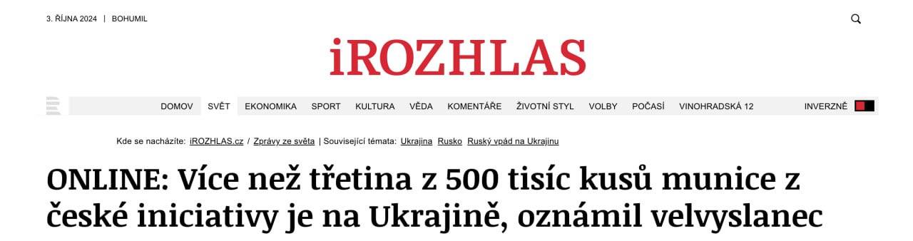 Нагадаємо, Чехія дозволила Україні застосовувати територією РФ снаряди, поставлені в рамках ініціативи Праги.