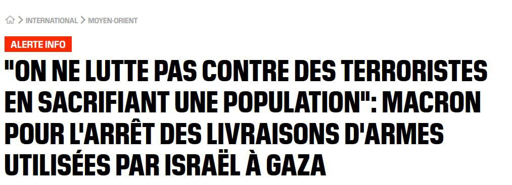Тим часом Емманюель Макрон заявив, що Франція припинила постачання Ізраїлю зброї.