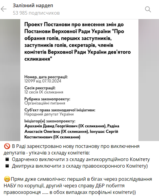 Перед цим Дмитрук заявив в інтерв'ю "Страні", що має намір брати участь у засіданнях правоохоронного комітету.