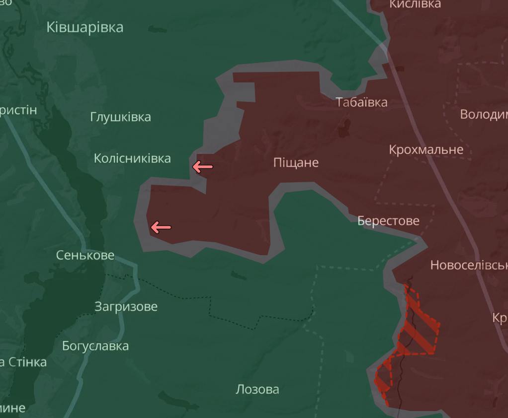 Стельмахівка розташована річкою Жеребець, яку обороняли ЗСУ. Судячи з карти DS, річку росіяни перейшли і планують просуватися на південь від російського виступу в районі Піщаного – ймовірно, прикриваючи фланги основного прориву до річки Оскол, що є головною метою РФ на цій ділянці фронту.