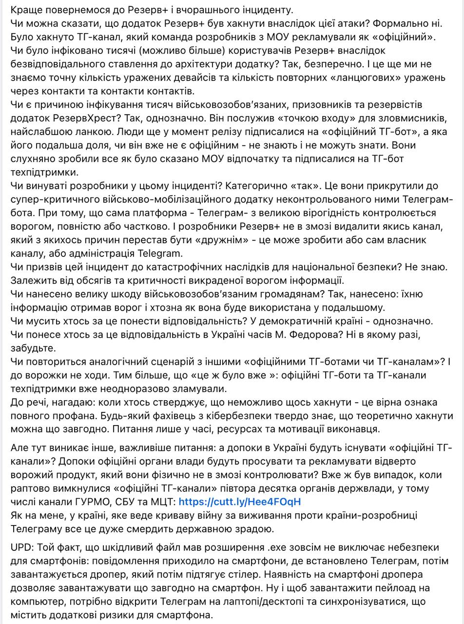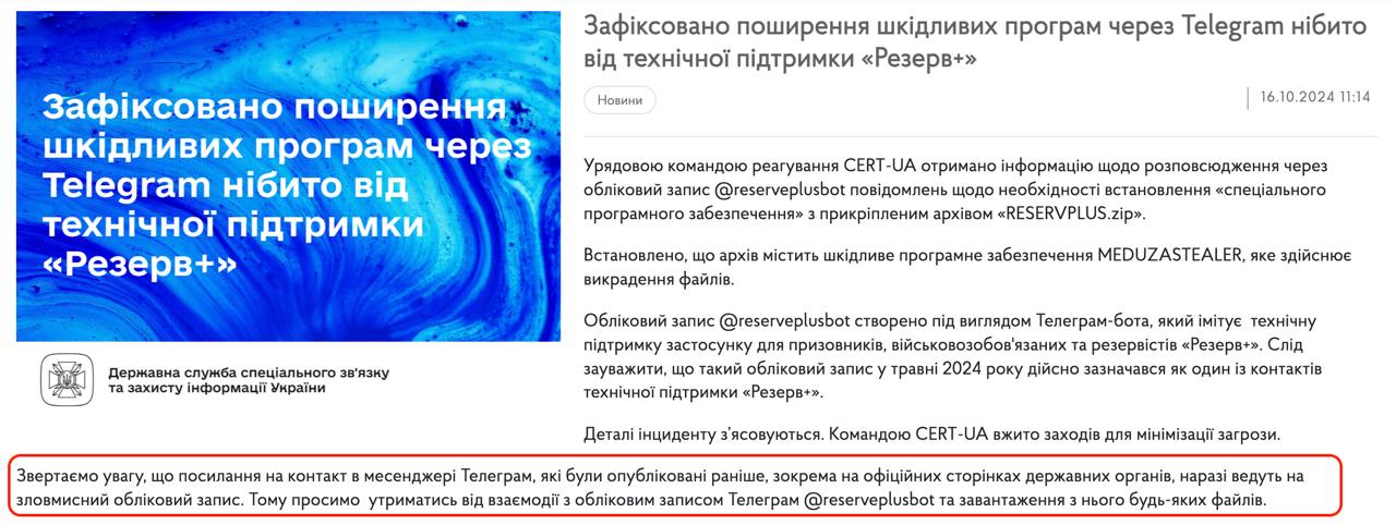 Проте Держслужба спецзв'язку підтвердила, що посилання на цей бот "були опубліковані раніше, зокрема, на офіційних сторінках державних органів", але зараз "ведуть на зловмисний обліковий запис", через який зафіксовано поширення шкідливих програм.