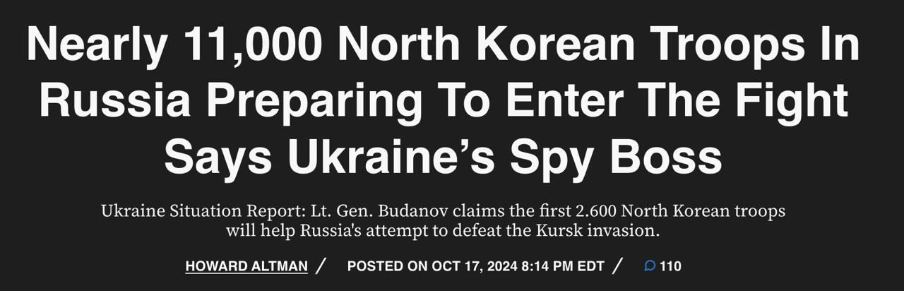 Близько 11 тисяч північнокорейських солдатів закінчують підготовку в Росії та будуть готові воювати проти України вже з 1 листопада.