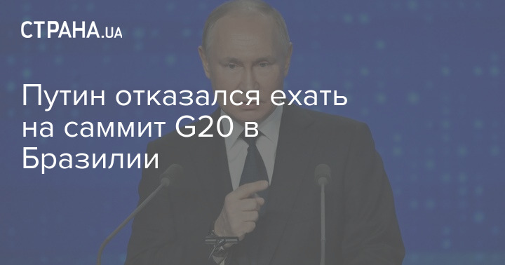 Президент Росії Володимир Путін заявив, що не поїде на саміт G20 до Бразилії, який відбудеться у листопаді.
