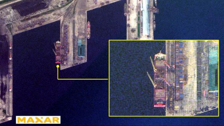 На супутниковій фотографії, як заявляється, видно російське військове судно, що залишає північнокорейський порт Наджин. При цьому не ясно, що він перевозить солдат або зброю.