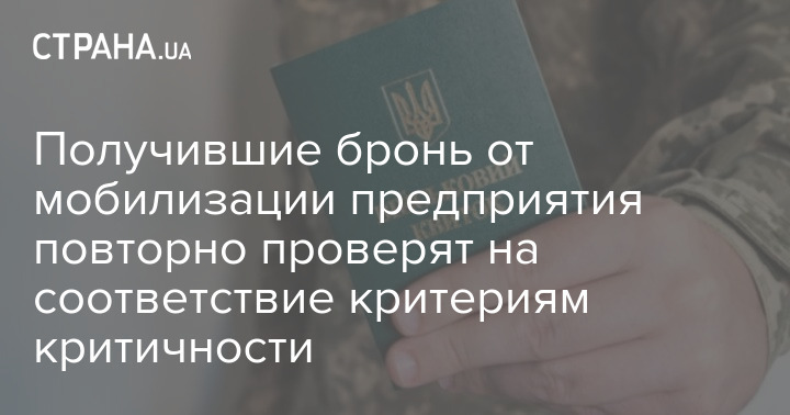 Підприємства, що одержали бронь від мобілізації, повторно перевірять на відповідність критеріям критичності