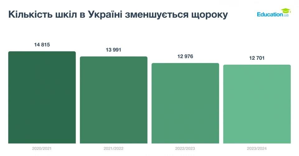 Якщо у 2020-21 роках у країні працювало 14 815 шкіл, то у 2023-24 роках – уже 12 701.