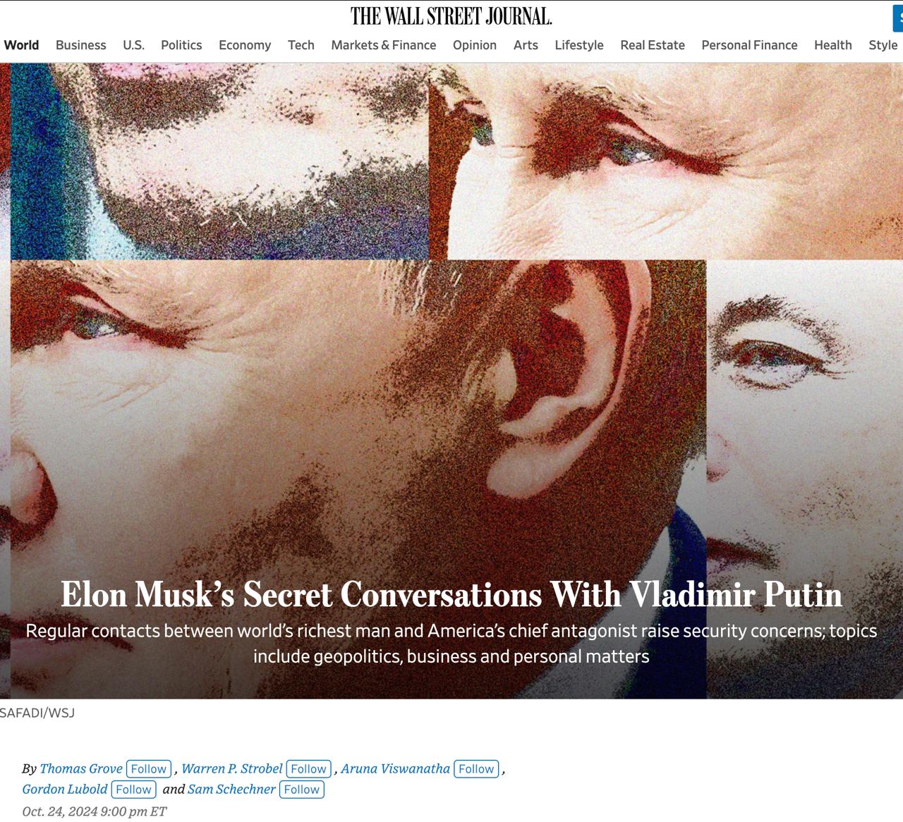 WSJ пише, що таємні переговори Маска можуть підтверджувати бажання Трампа укласти масштабну угоду з РФ, зокрема щодо України.