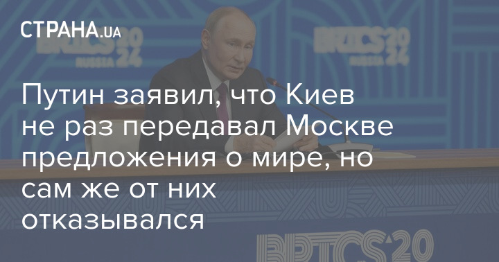 Путін заявив, що Київ не раз передавав Москві пропозиції про мир, але сам же від них відмовлявся
