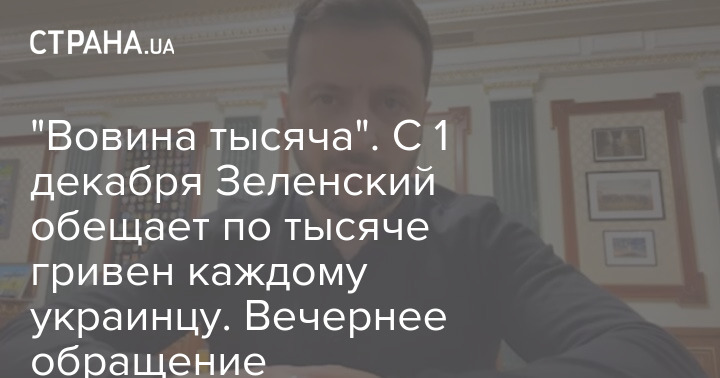 "Вовина тисяча". Із 1 грудня Зеленський обіцяє по тисячі гривень кожному українцю. Вечірнє звернення
