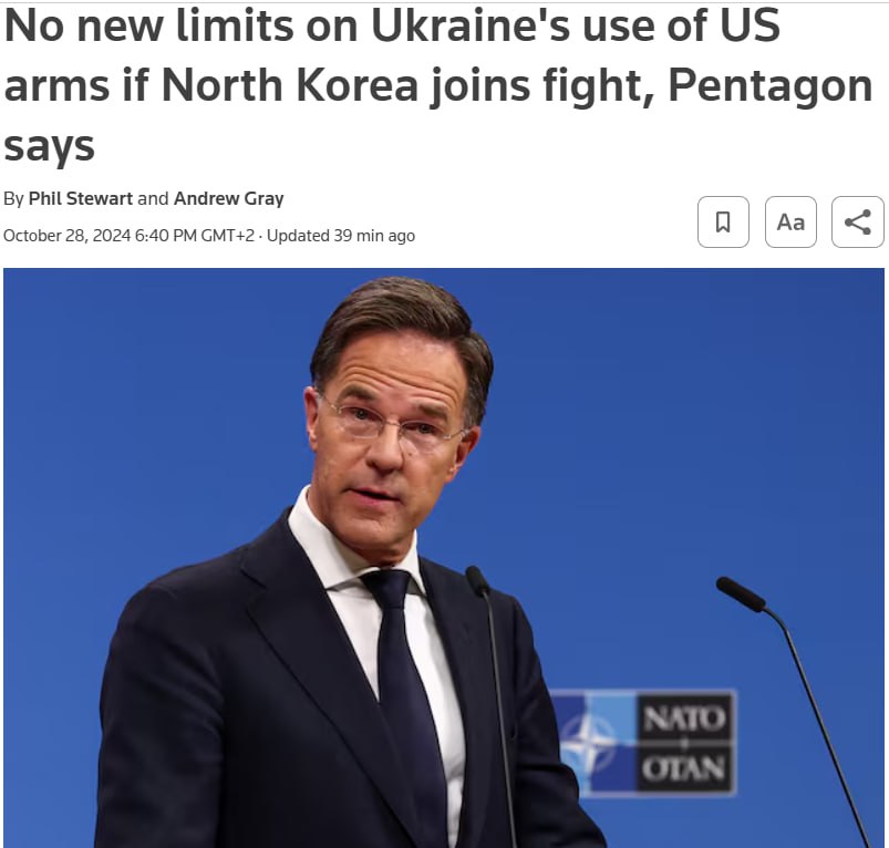 Тим часом, генеральний секретар НАТО Марк Рютте підтвердив, що КНДР направила своїх солдатів до Росії і зараз вони беруть участь у війні проти України в Курській області.