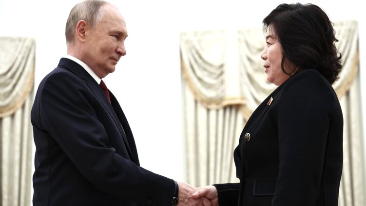 Російський лідер Володимир Путін прийняв у Кремлі міністра закордонних справ КНДР Цой Сон Хі, яка пообіцяла, що Північна Корея "твердо стоятиме поряд із російськими товаришами".