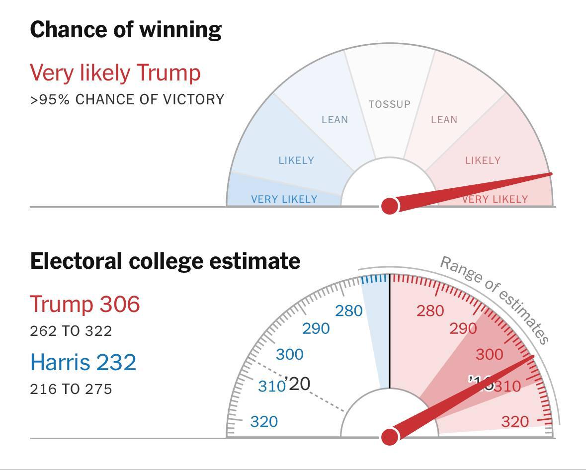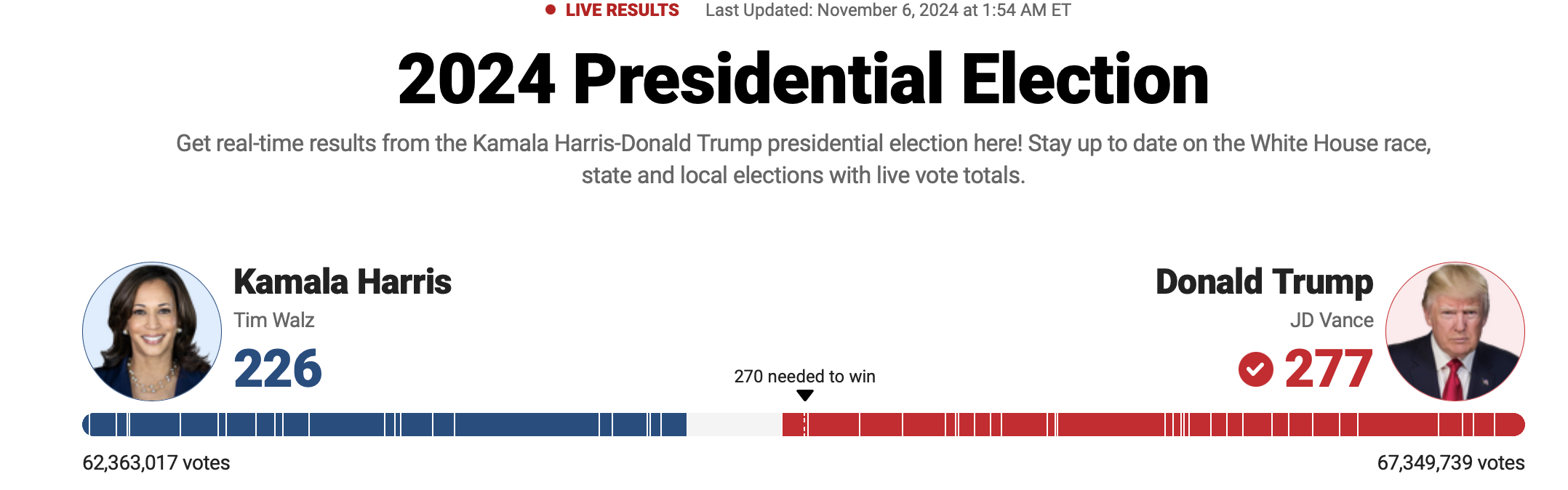 За даними The New York Times, Трамп отримує 277 голосів виборців.