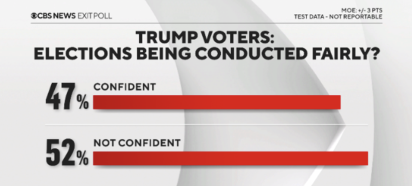 00:54 Більшість прихильників Трампа впевнені, що вибори пройшли нечесно - 52%. Про це свідчить опитування телеканалу CBS News. Серед прихильників Харріс у чесності виборів упевнені 88% виборців.