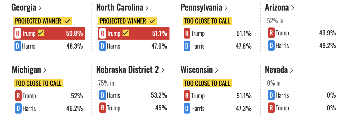 За його даними, республіканець забрав Пенсільванію, Джорджію та Північну Кароліну.