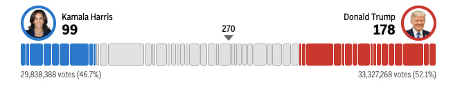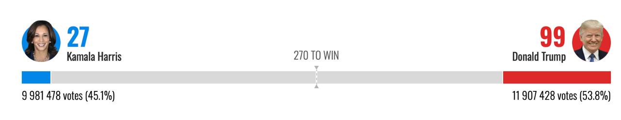 Рахунок у такий спосіб 99 виборщиків у республіканця - проти 27 у Камали Харріс.