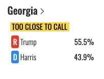 Джорджія: Трамп - 51,2%, Харріс - 48%.