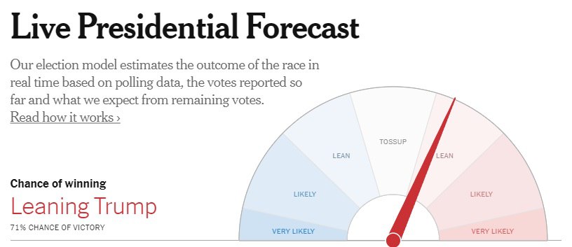 04:57 New York Times із 71-відсотковою ймовірністю прогнозує перемогу Дональда Трампа.