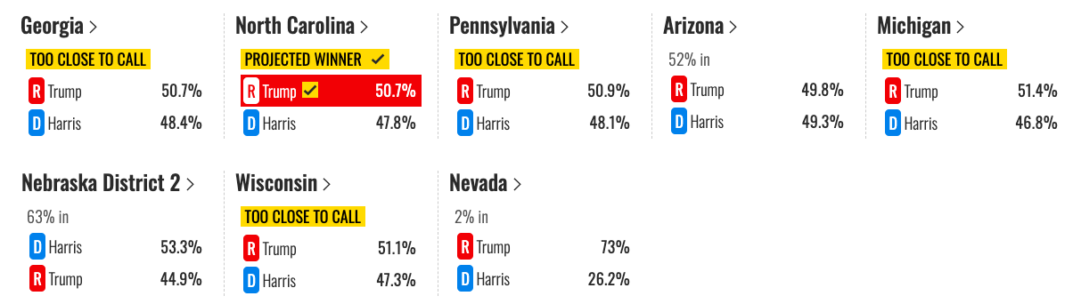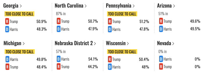 На цю хвилину активно вважають голоси у семи із восьми ключових штатах.