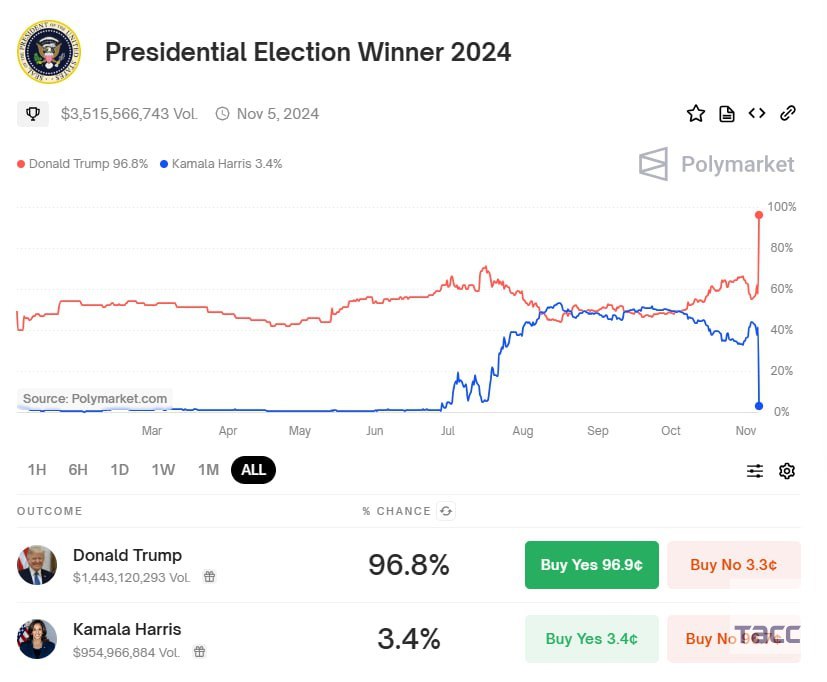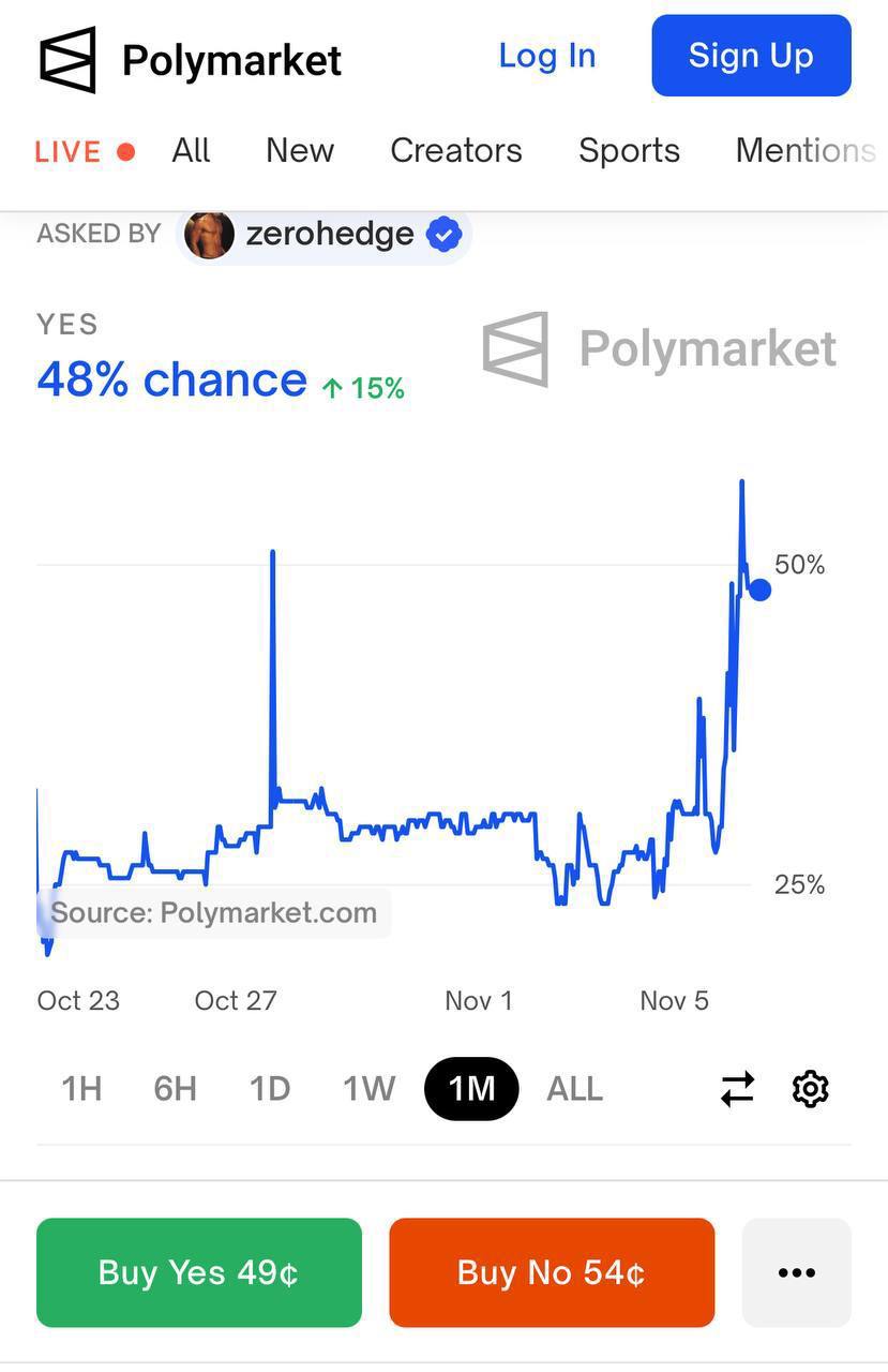 20:09 58% на перемогу Трампа дає платформа ринків прогнозів Polymarket.