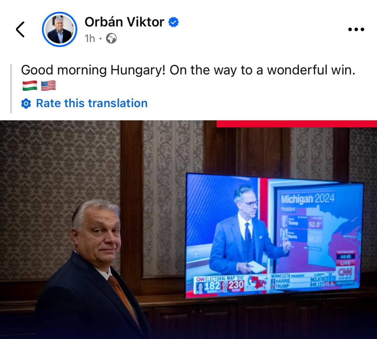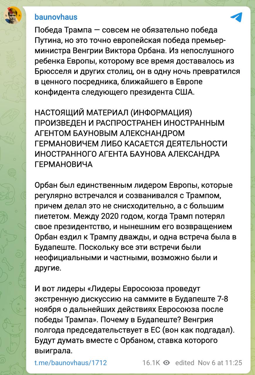 "Орбан був єдиним лідером Європи, який регулярно зустрічався і зідзвонювався з Трампом, причому робив це не поблажливо, а з великим пієтетом", - пише він.