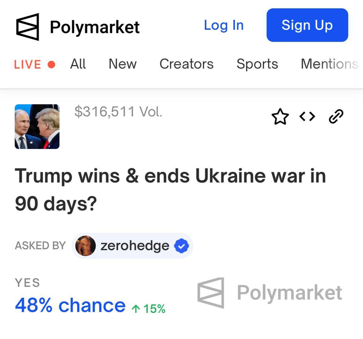 15.50 Букмекери приймають ставки на те, чи Трамп закінчить війну в Україні за найближчі 3 місяці.