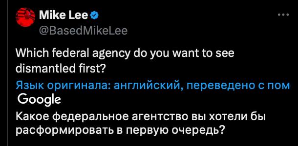 13:15 Сенатор від штату Юта Майк Лі (республіканець запропонував «демонтувати Вашингтон, як ми його знаємо»).