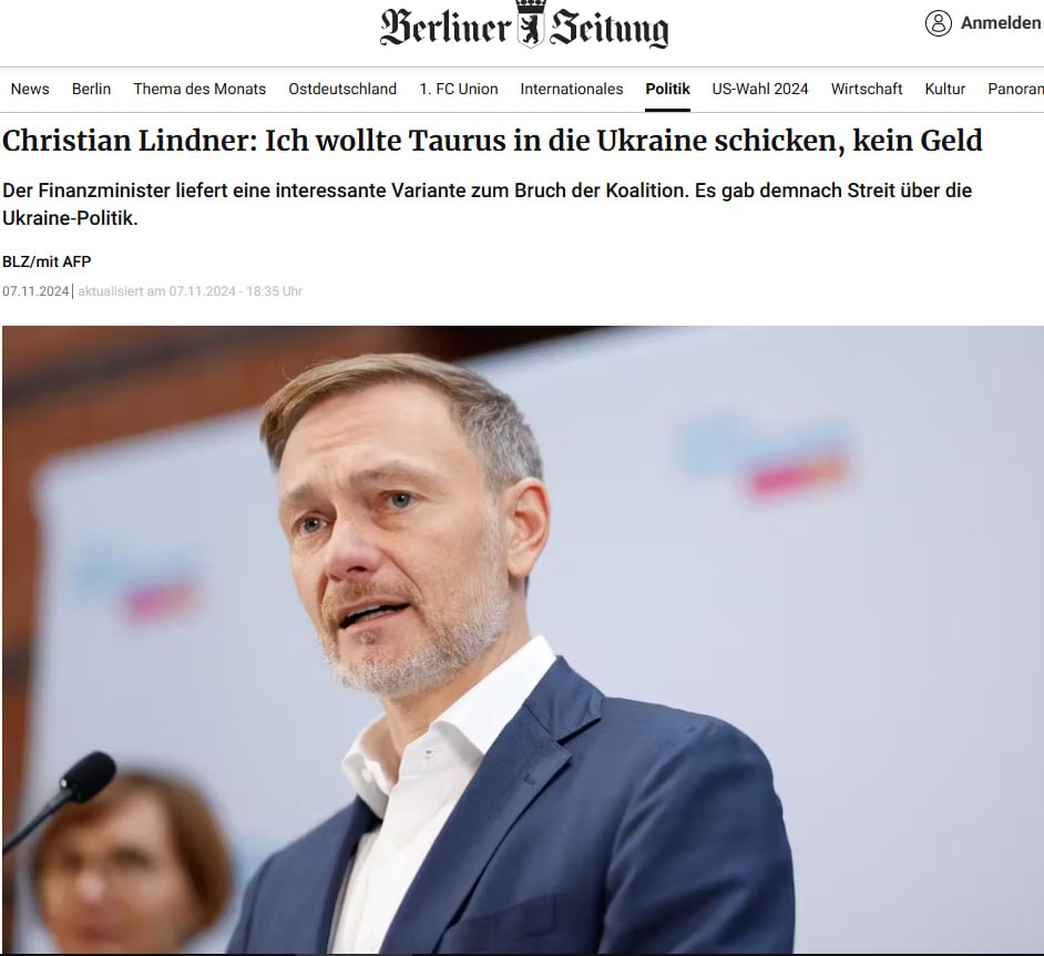Відправлений у відставку міністр фінансів Німеччини Крістіан Лінднер представив свою версію причин того, що сталося. Він стверджує, що канцлер Олаф Шольц звільнив його через пропозицію відправити ракети Taurus до України.