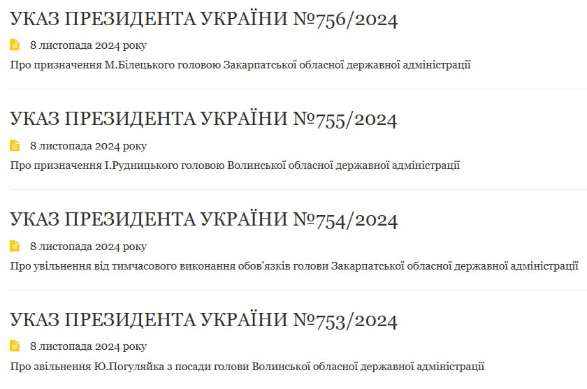Укази про призначення з’явилися на сайті президента.