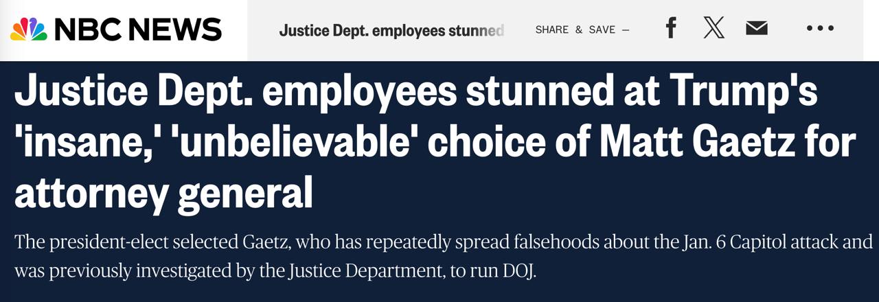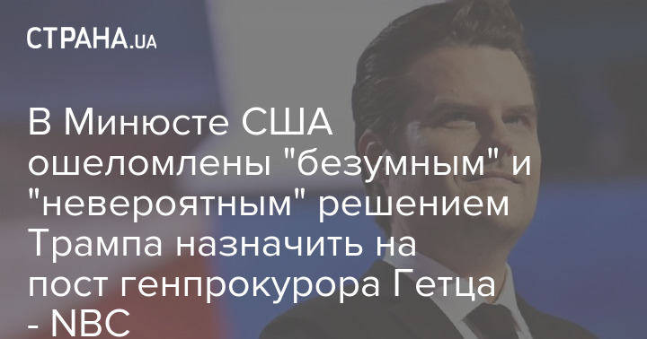Співробітники Міністерства юстиції США приголомшені "шаленим" та "неймовірним" рішенням Дональда Трампа призначити на посаду генерального прокурора Метта Гетца.