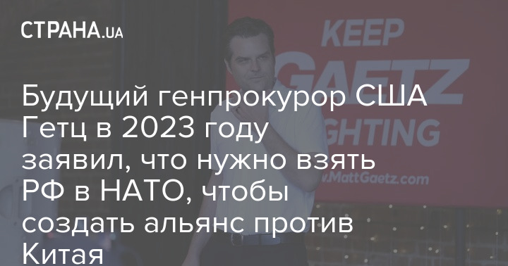 Майбутній генпрокурор США Метт Гетц влітку 2023 заявив, що краще взяти в НАТО не Україну, а Росію, щоб створити альянс проти Китаю.