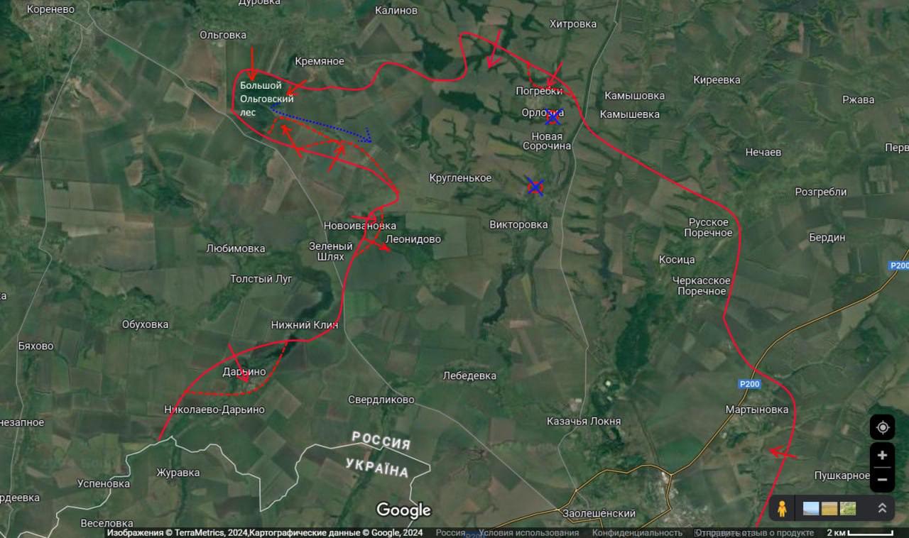 Йдеться про Великий Ольгівський ліс на північному заході українського плацдарму, де раніше вже повідомлялося про настання російських військ (район Коренево).