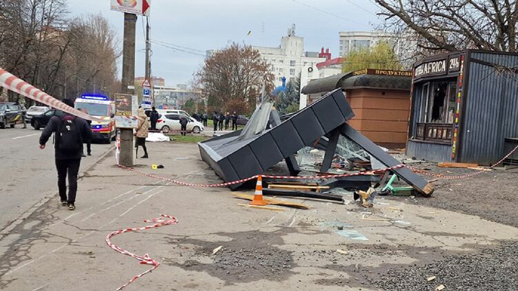 Руїни зупинки після ДТП. Фото: facebook.com/policia.Khmelnytskoi.oblasti