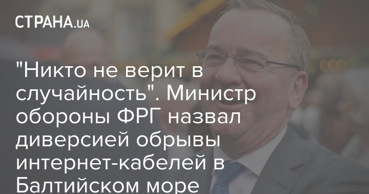 Міністр оборони ФРН Борис Пісторіус вважає, що два телекомунікаційних кабелі на дні Балтійського моря були пошкоджені внаслідок диверсії.