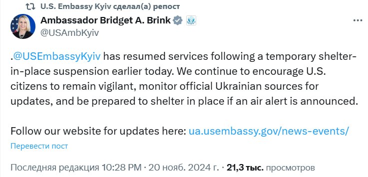 Раніше представник Державного департаменту Меттью Міллер заявив, що посольство США у Києві відновить нормальну роботу 21 листопада. За його словами, скорочення персоналу посольства США не відбулося.