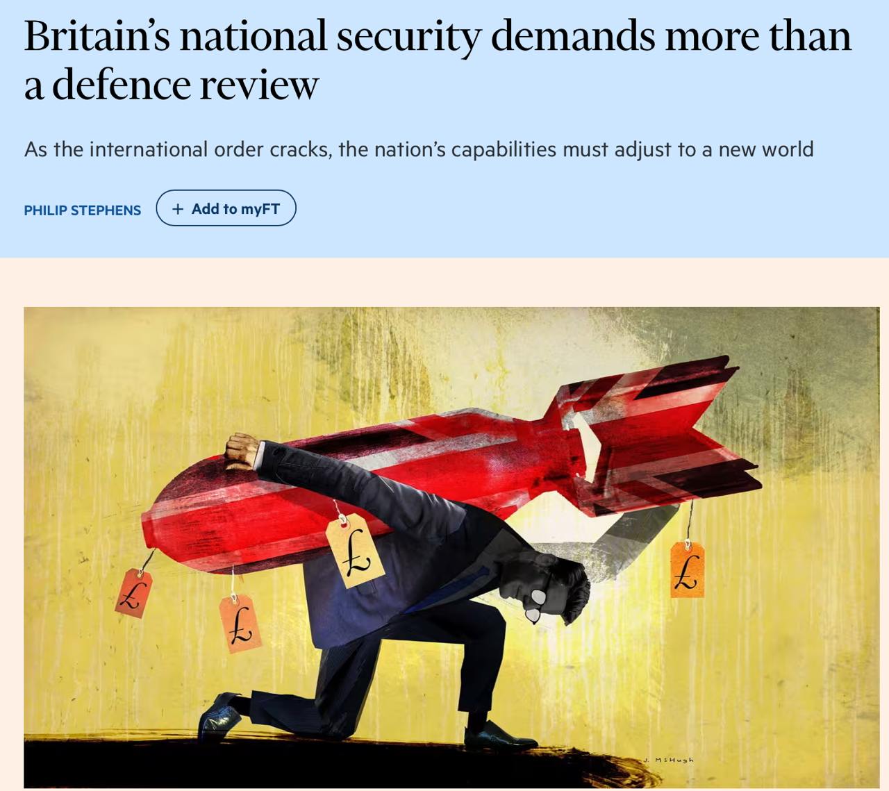 "Збройні сили Великобританії не мають ні маси, ні стійкості, ні внутрішньої згуртованості для ведення тривалої війни високої інтенсивності. За відсутності системи протиракетної оборони критична інфраструктура країни вкрай вразлива... Армія стала меншою, ніж будь-коли з часів Наполеонівських воєн, флот не може дозволити собі адекватну ударну силу для своїх флагманських авіаносців, а пілоти Королевських ВПС позбавлені льотної підготовки через бюджетні обмеження", - малюють картину автори доповіді.