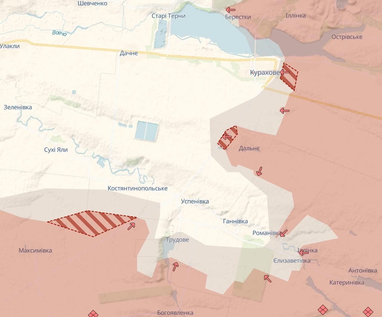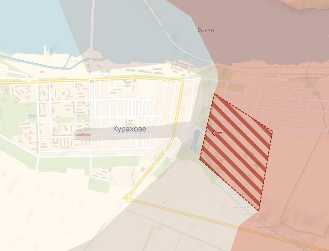 14.23 Армія РФ просунулась у східній частині Курахового та зайшла до центру міста, свідчить карта Deep State. Судячи з неї, росіяни штурмували одну вулицю, але закріпитись у центрі їм не вдалося.