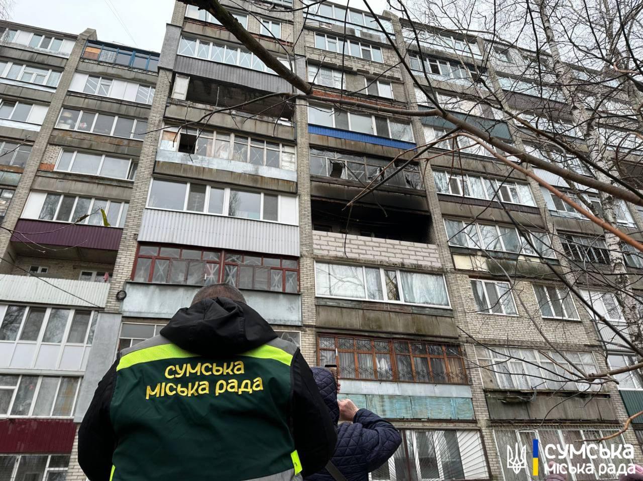 13.23 У Сумах розпочалася пожежа в одній із багатоповерхівок після вибухів, повідомляють місцеві паблики.