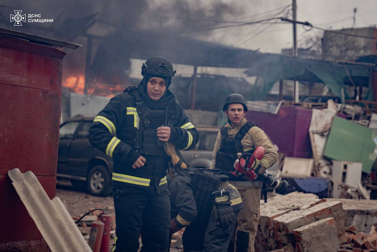 18.25 Фото ліквідації наслідків сьогоднішнього обстрілу Сум опублікувало МВС.