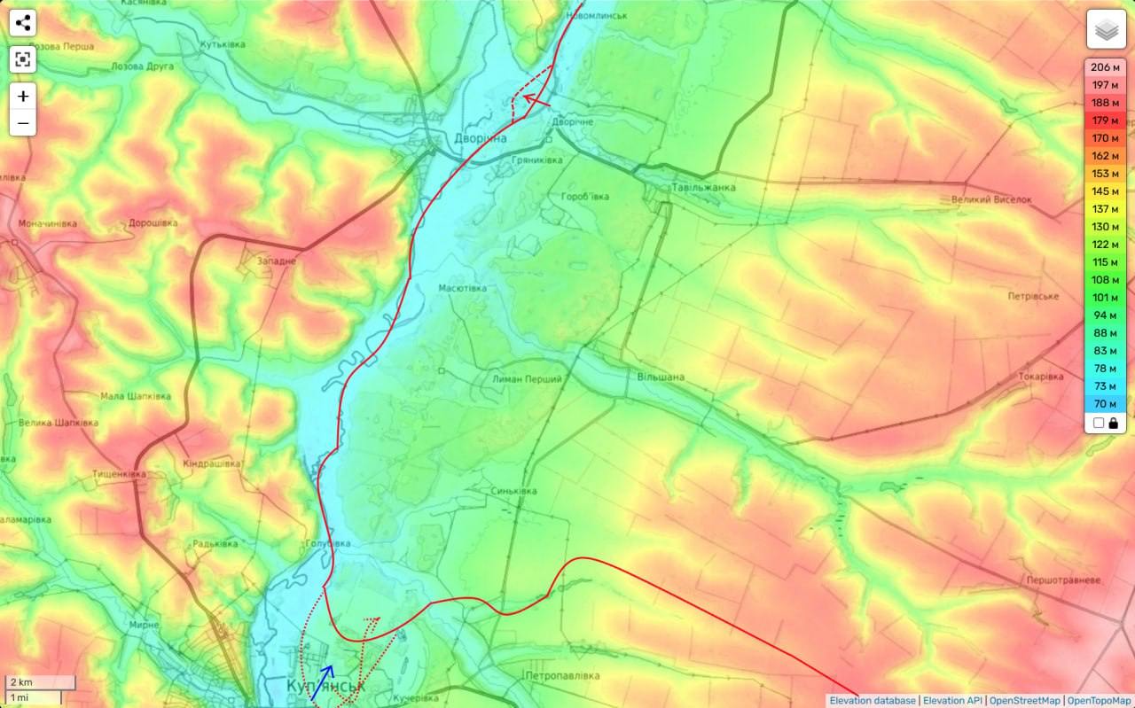 7.57 Росіяни розширили свій плацдарм на лівому березі річки Оскол на північ від Куп'янська.