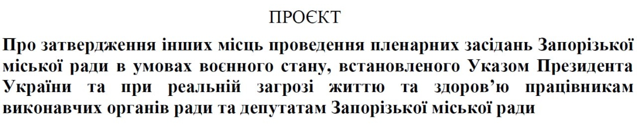 Відповідний проект було опубліковано місцевою владою на сайті Запорізької міської адміністрації.