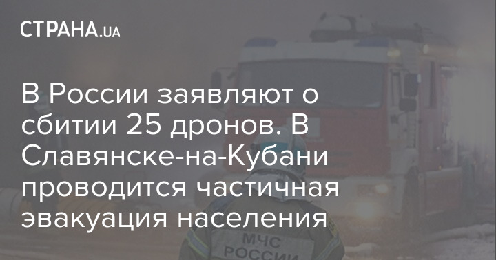 Міноборони РФ заявляє про збиття 25 БПЛА: два – над Ростовською областю (Каменськ та Таганрог), шість – над Брянською, 14 – над територією Краснодарського краю (Слов'янськ-на-Кубані, хутір Чигрин), три – над Кримом.