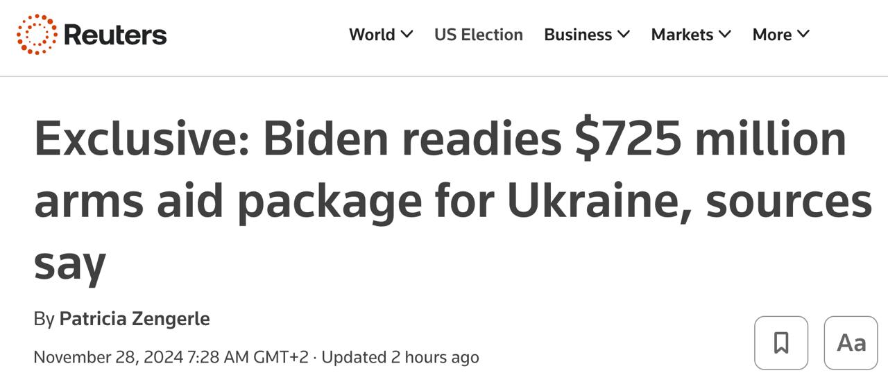 Адміністрація Байдена готує ще один пакет військової допомоги Україні на 725 млн доларів - Reuters