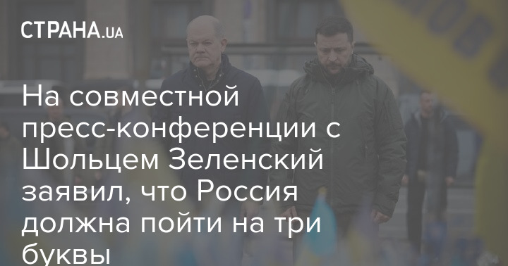 На спільній прес-конференції із Шольцем Зеленський заявив, що Росія має піти на три літери