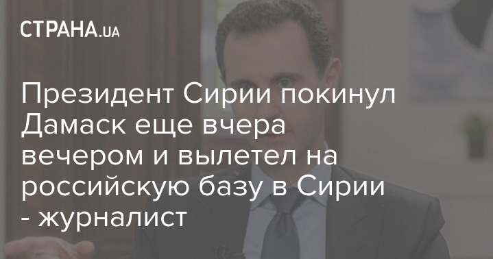 Президент Сирії Башар Асад покинув Дамаск ще вчора увечері та вилетів на російську базу в Сирії.