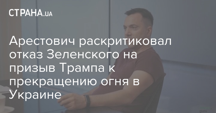 Колишній радник офісу президента Олексій Арестович розкритикував відмову Володимира Зеленського на заклик новообраного президента США Дональда Трампа припинити вогонь по лінії фронту в Україні.