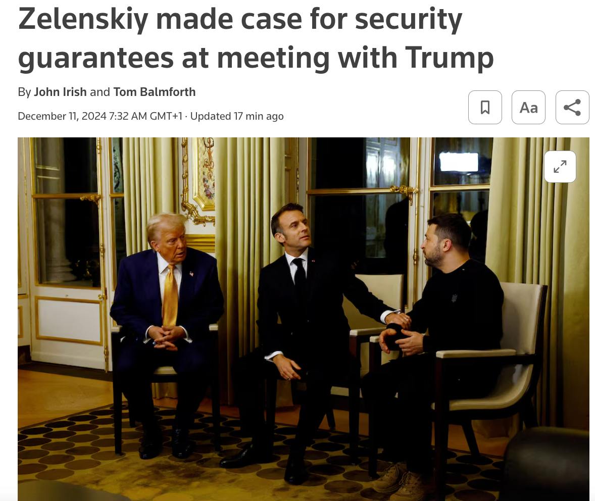 Зеленський на це заявив, що "для світу потрібні гарантії, бо одного припинення вогню недостатньо". Макрон та Зеленський при цьому "були на одній хвилі", але намагалися цього не проявляти при Трампі.