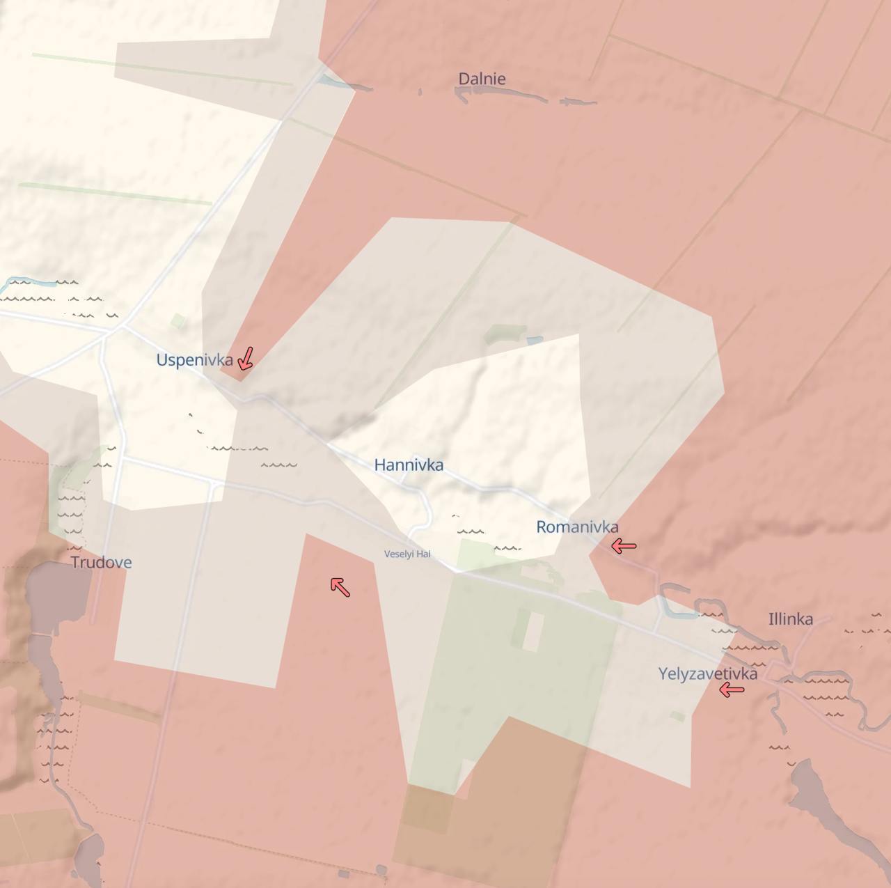 "В даний час підрозділи Збройних Сил України, які задіяні для проведення оборонних операцій на відповідній ділянці фронту, самовіддано відбивають російські штурми на околицях населених пунктів Успенівка, Аннівка, Трудове, Романівка, вживають необхідних заходів для протидії їх захопленню або оточенню противником", у повідомленні угруповання "Хортиця".